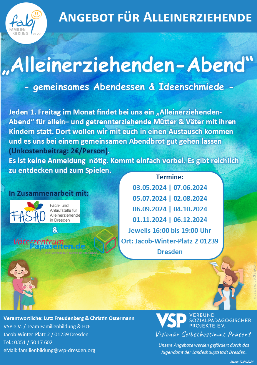 Seit Mai findet jeden ersten Freitag im Monat ein Alleinerziehenden-Abend mit gemeinsamen Abendessen statt.