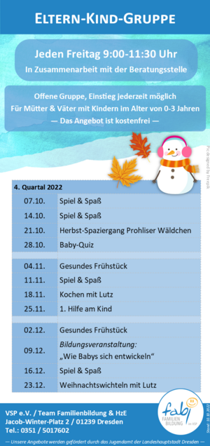Im Herbst findet unser Familientreff und die Eltern-Kind-Gruppe wie gewohnt statt.