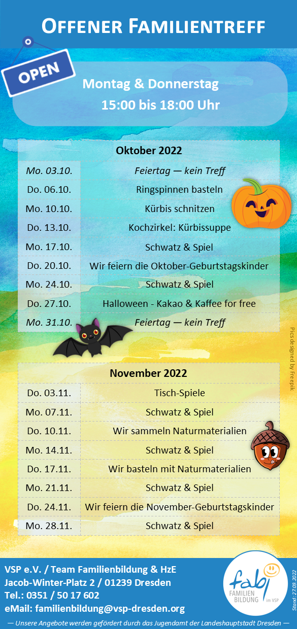 Außerdem erwartet euch wieder ein "Alleinerziehenden-Abend" im November!