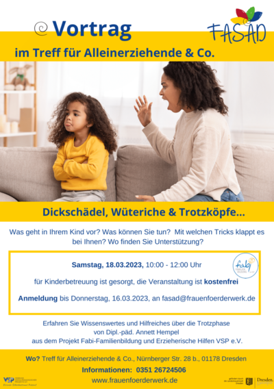 Vortrag: "Dickschädel, Wüteriche & Trotzköpfe" - im Treff für Alleinerziehende & Co, Nürnberger Str. 28b