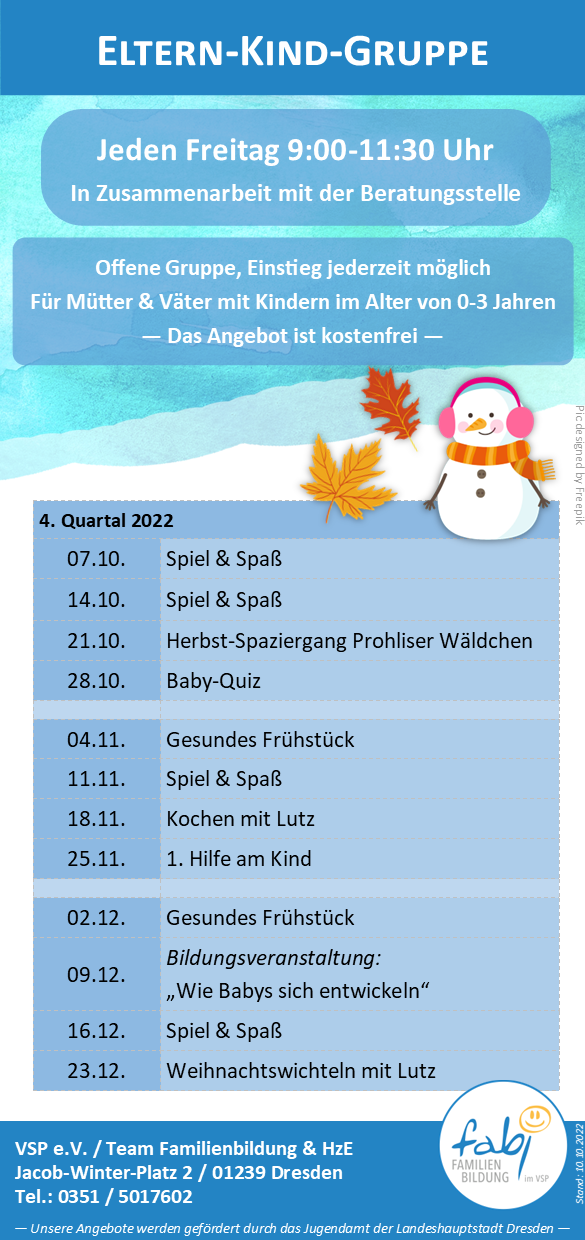 Im Herbst findet unser Familientreff und die Eltern-Kind-Gruppe wie gewohnt statt.
