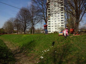 Probiert euch aus beim Slacken, Baumklettern, Parcour laufen, Highlinen und Bouldern am Landgraben gleich hinterm "Mosaik". In der Winterzeit gehen wir in die Kletterhalle "XXL-Die Wand" auf der Breitscheidstraße.